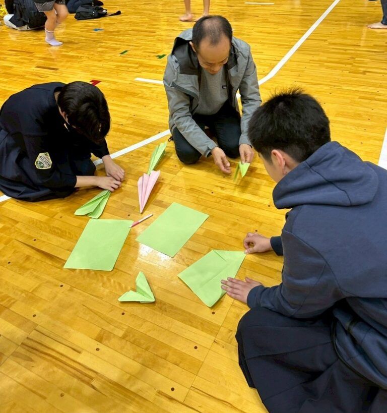そして最後に、紙飛行機大会!飛距離順に景品をご用意いただき、久しぶりに皆で紙飛行機を折りました!