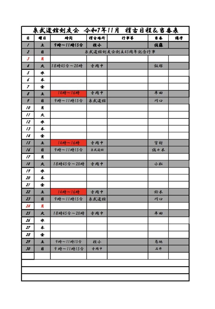 11月稽古予定