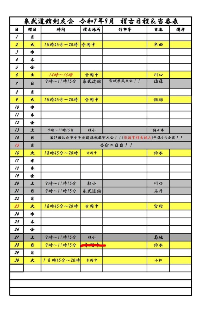 上記日程は通常と違うため、ご確認をお願いいたします。
